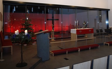 Myndin er af Guðríðarkirkju jólum 2011, myndasmiður Rögnvaldur Guðmundsson.